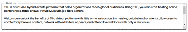 Website, social media links, WhatsApp number and about us information can be updated in the Exhibitor Full Details under Manage My Booth option.